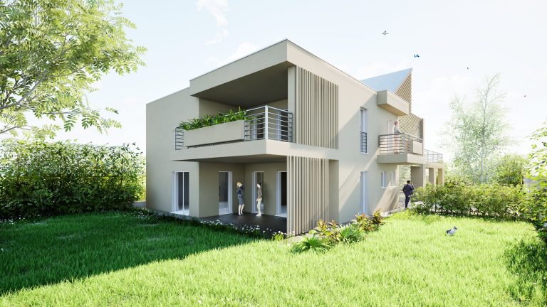 La nuova costruzione è costituita da due piani fuori terra, in cui sono collocate due unità abitative, più un piano interrato destinato ad autorimessa e servizi accessori (cantine, centrali tecnologiche etc.). L’edificabilità del lotto, secondo i parametri del vigente P.G.T., consente la realizzazione di futuri ampliamenti e già nel fabbricato realizzato sono state previste tutte quelle predisposizioni e tutte quelle dotazioni di spazi accessori e pertinenziali richieste per le eventuali future unità abitative (vano ascensore, autorimesse, cantine, centrali tecnologiche etc. etc.). La configurazione del nuovo edificio è stata studiata, a livello planimetrico, architettonico e di inserimento paesistico-ambientale, in modo tale che fosse equilibrato ed armonico, anche per l’eventuale suo successivo ampliamento.