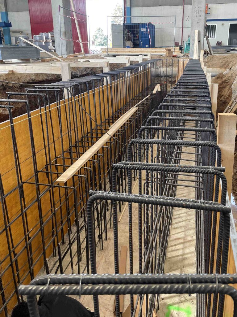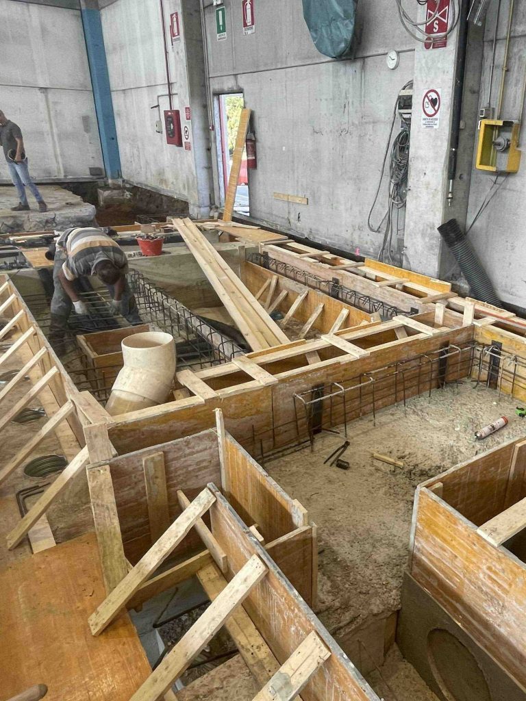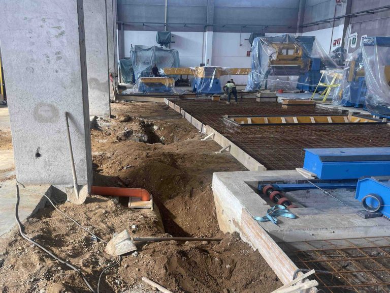 La “nuova” linea di taglio longitudinale si sviluppa in parte sulla modifica delle fondazioni esistenti e, in parte, su nuove fondazioni definite per la modifica dello sviluppo del percorso produttivo.